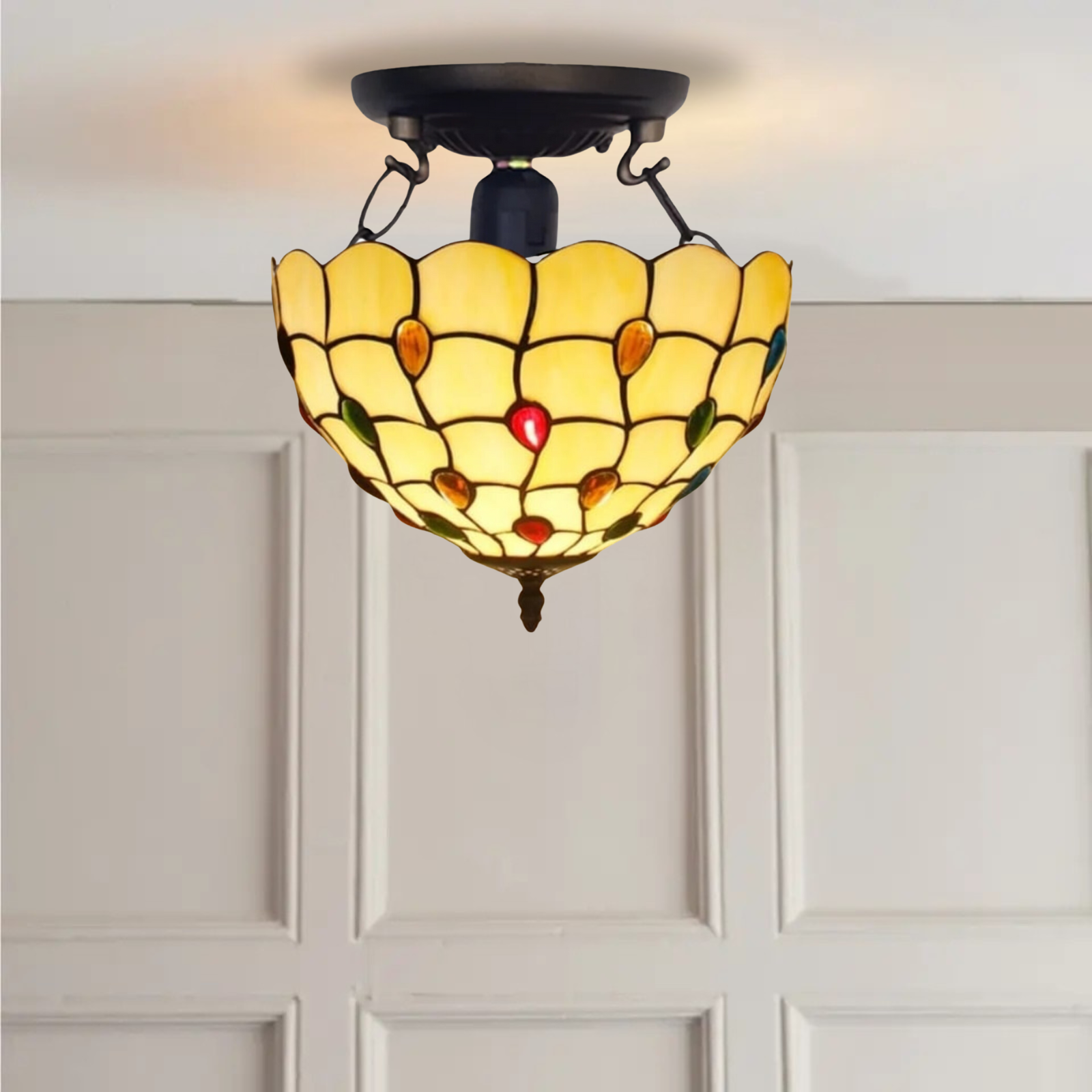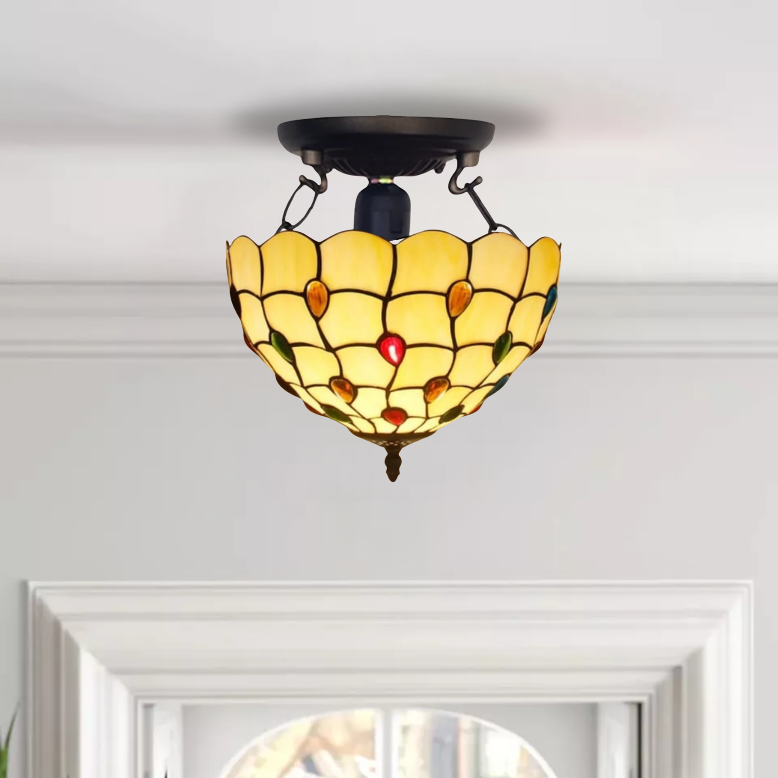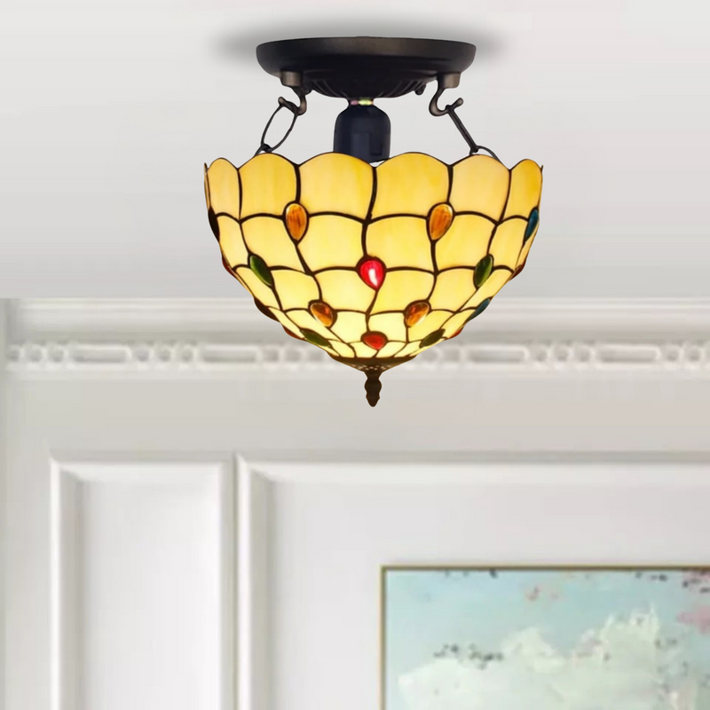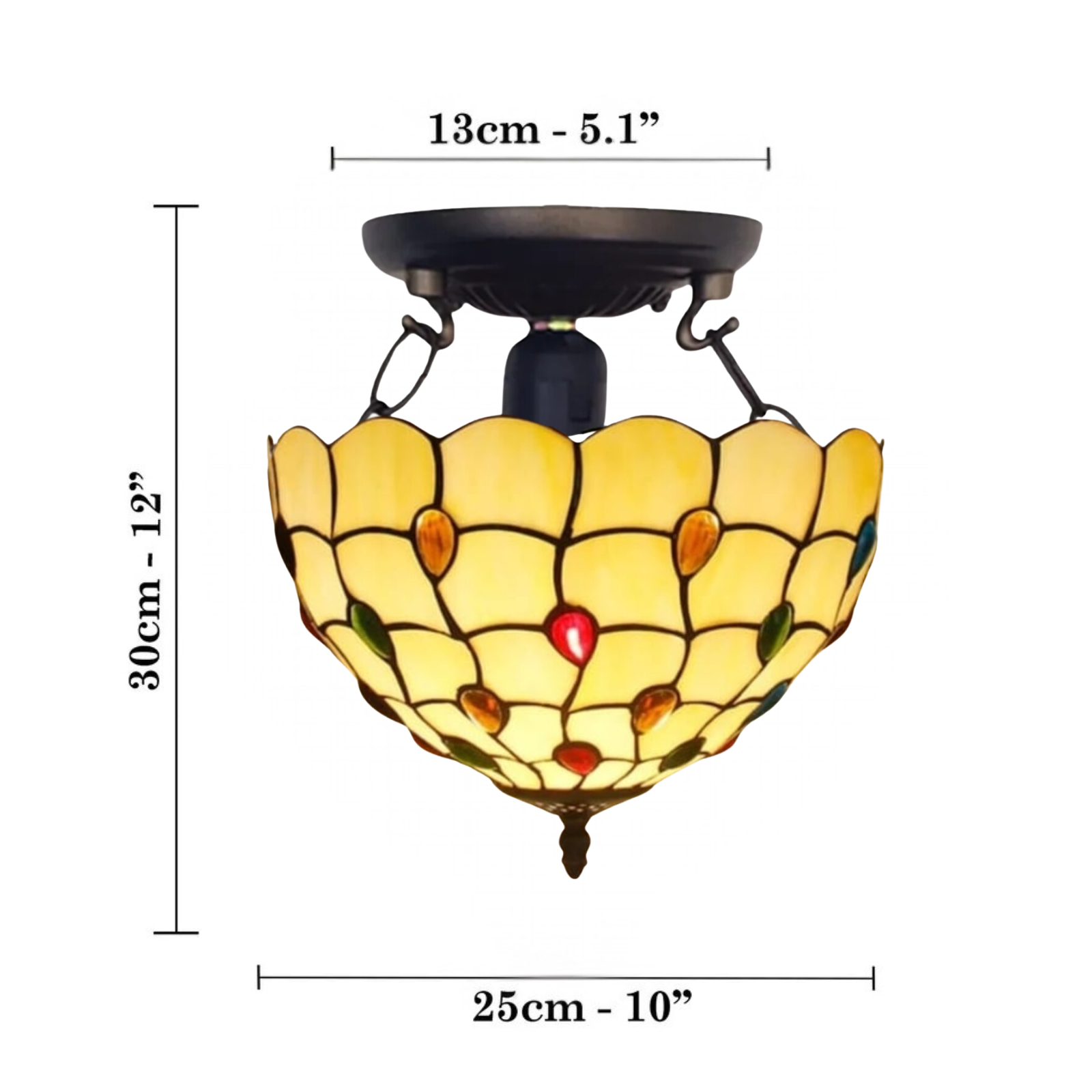 Honey, Honeycomb Tiffany-Style, Handcrafted Ceiling Light is a true gem. The soldering is clean and smooth, and the glass is authentic, cool to the touch, with those minor ripples of texture. No sharp edges. No shaky parts. Just long-lasting, high-quality craftsmanship. Also, this isn't composed of plastic or resin like many mass-produced replicas are.