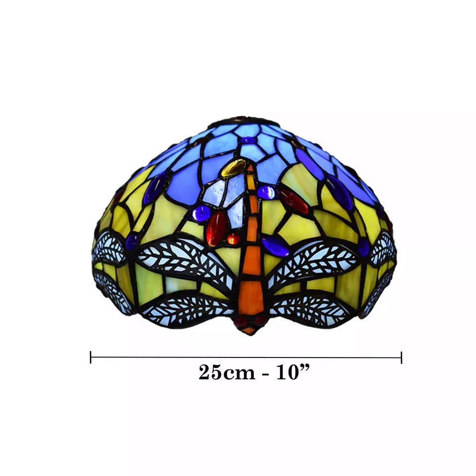 Having worked on several handcrafted Tiffany lamps throughout the years, I can assure you that 10-Inch Yellow & Blue Handmade Dragonfly Tiffany-Style Glass Shade is a true gem. The soldering is clean and smooth, and the glass is authentic, cool to the touch, with those minor ripples of texture. No sharp edges. No shaky parts. Just long-lasting, high-quality craftsmanship. Also, this isn't composed of plastic or resin like many mass-produced replicas are.