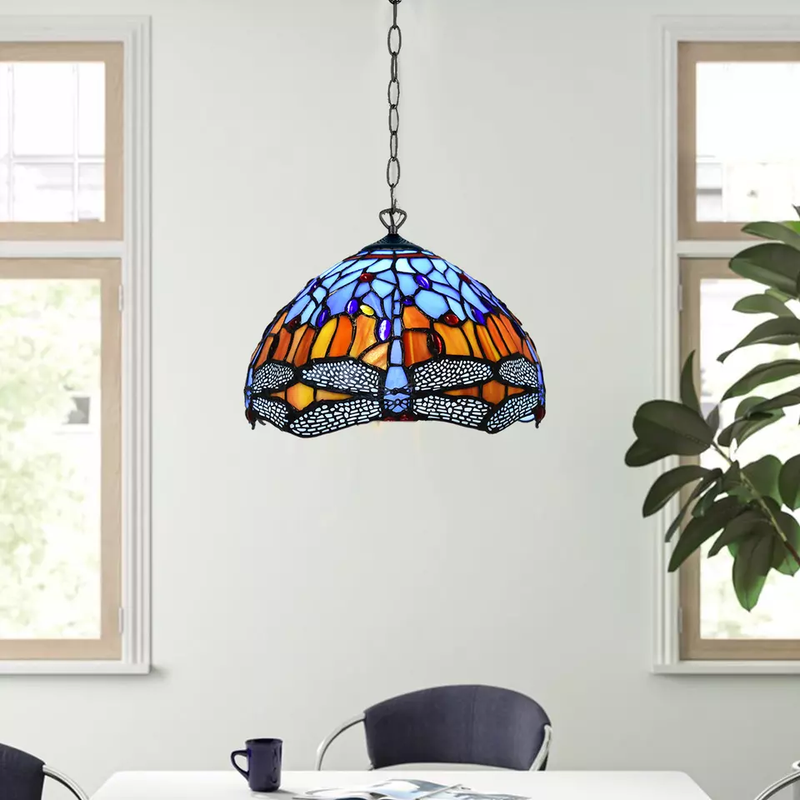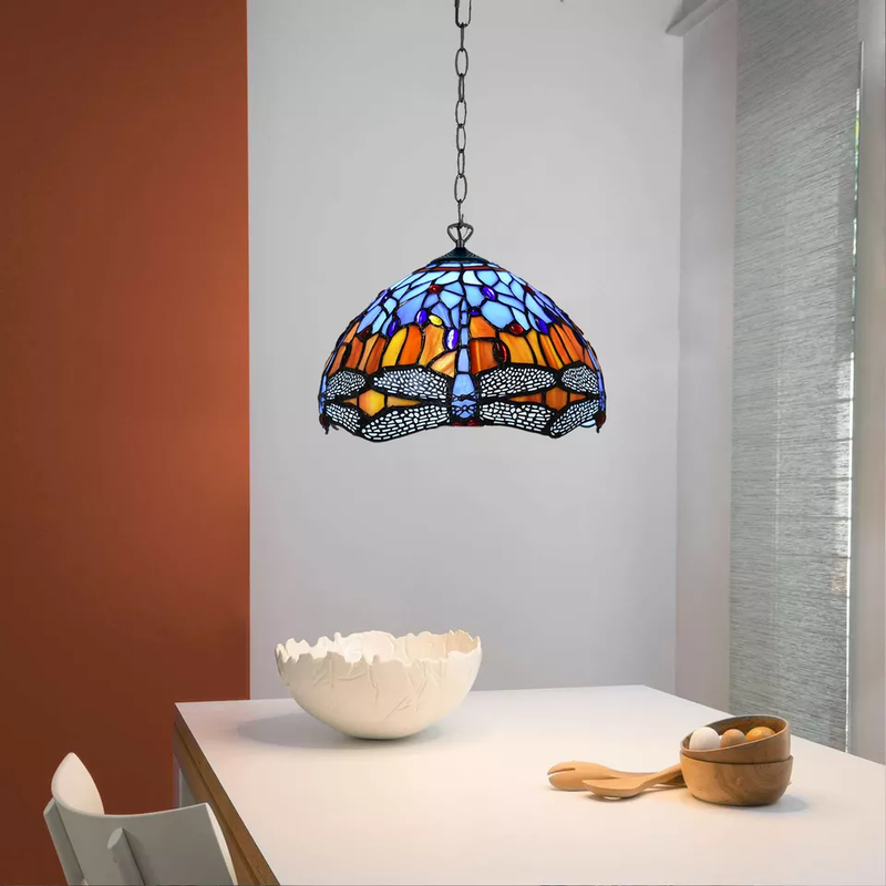 You are purchasing more than simply a light. You are buying a piece of stained-glass art, a handcrafted 10-Inch Blue & Orange Dragonfly Tiffany-Style Handmade Pendant Lamp. It's a huge victory for the price, especially when you take note of the materials and finish. This one provides the perfect balance of authenticity and cost.